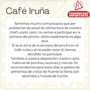 Horario degustación: de 12:00 a 14:00 y de 19:00 a 21:00 h. Cerrado domingo. Domingo 23 y 30 se servirá el pincho de 11:30 a 14:30 horas.